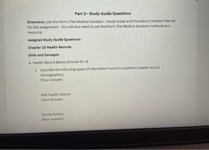Solved Part 2 Study Guide Questions Directionsuse The Kinn S Chegg Com