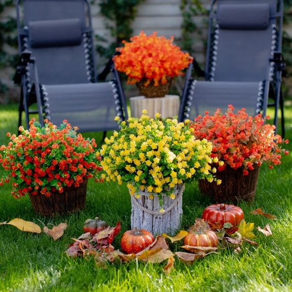 Artificial 24 Bundles Flowers Outdoor Flowers Uv Resistant Fake Plants Plastic Flowers Green Bushes For Hanging Planters Vase Pot Home Window Decoration Orange Yellow Green Amazon De Home Kitchen